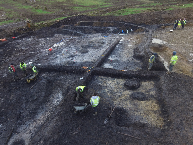 Archaeologists working on the N5 Ballaghaderreen to Scramoge Road Project have found lots of these. This picture is of a burnt mound in Tullyloyd townland and is of a very big burnt mound that people must have returned to many times, perhaps for big feasts or communal saunas.